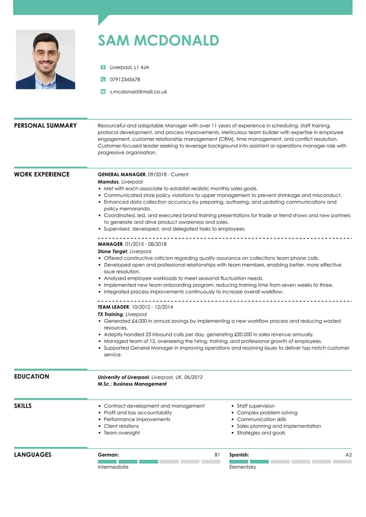 Recruiters are only interested in your relevant work experience. To keep your CV focused, list only your best achievements and use short sentences in your CV to make it easier to read.